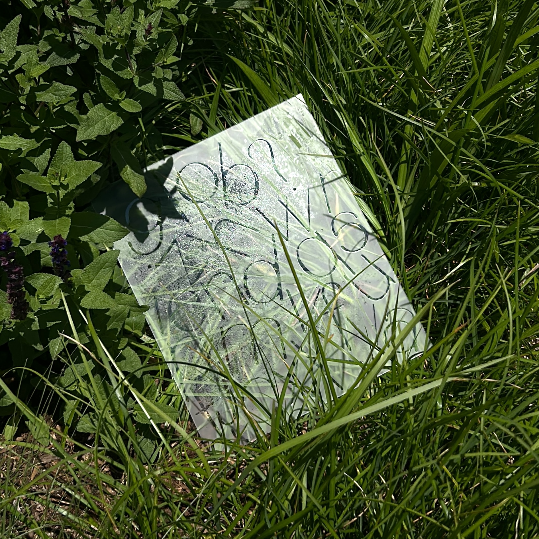 The type specimen for this typeface is a frosted pane of glass, a reference to the inspiration of liquid forms and cleaning products. The translucent and transparent contrast on the glass also further accentuates the fluidity of this typeface, as they visually represent the blurred boundaries between liquid and gas.